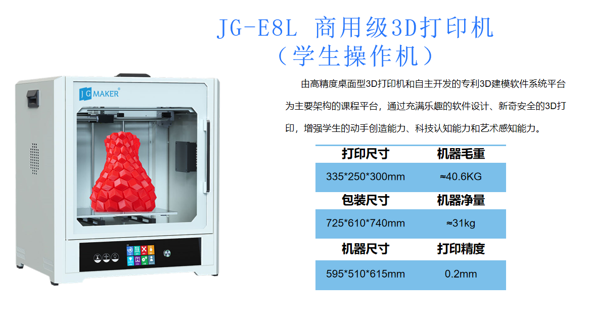 由高精度桌面型3D打印机和自主开发的专利3D建模软件系统平台为主要架构的课程平台,通过充满乐趣的软件设计、新奇安全的3D打印,增强学生的动手创造能力、科技认知能力和艺术感知能力。