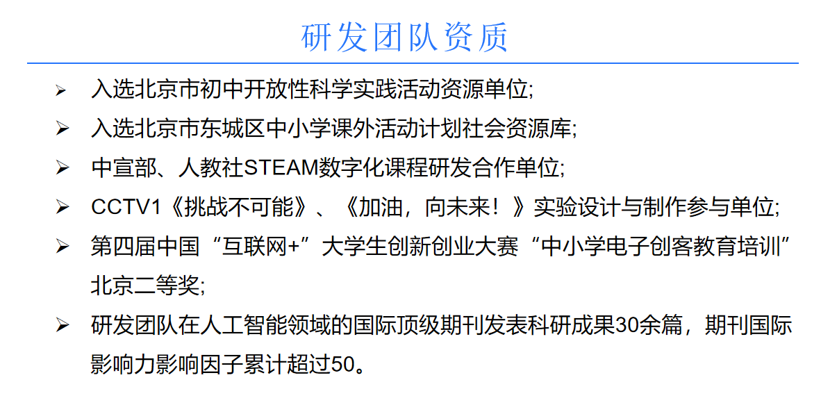 针对需要提升信息化教学的中小学和学生; 针对需要培养、积累科学素养人才的中小学和学生; 针对需要教授人工智能课程,机器人课程,编程类课程的中小学和学生; 针对培养学生科技竞赛,创新能力,机器人学习等K12课程体系外能力的中小学和学生。